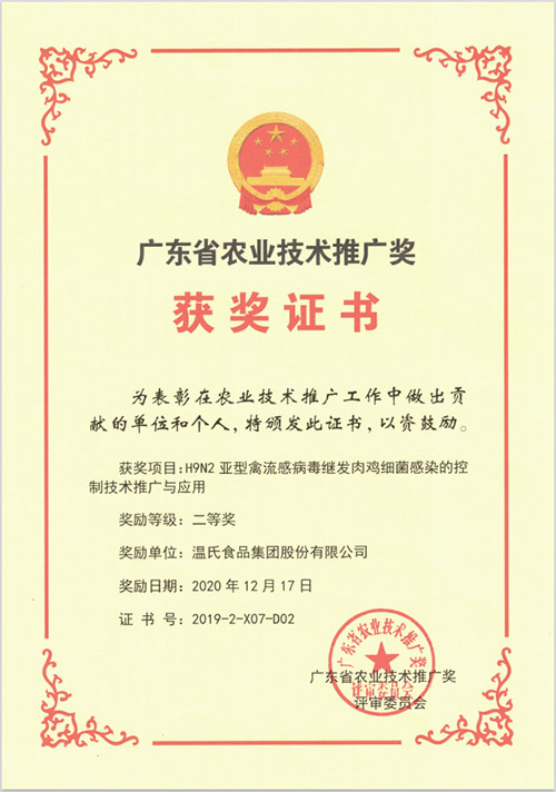 广东省农业手艺推广奖二等奖-《H9N2亚型禽流感病毒继发肉鸡细菌熏染的控制手艺推广与应用》